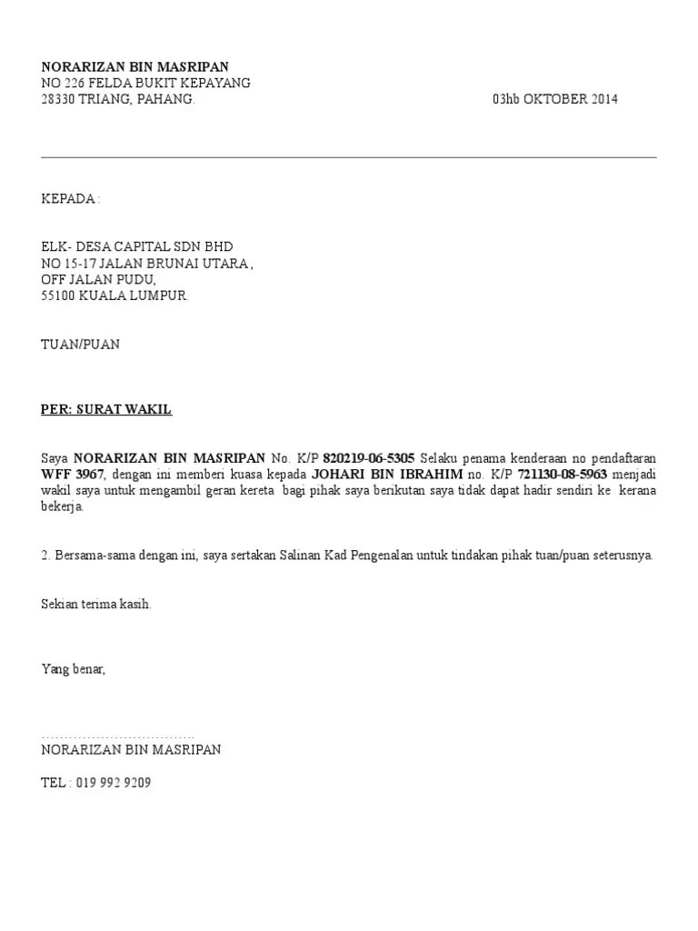 Contoh Surat Memberi Kuasa Kepada Wakil / 30 Contoh Surat Kuasa Perwakilan Pengurusan Pengambilan Terlengkap Doc Terupdate